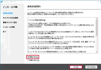- 使用許諾画面が表示されます.「同意して次へ」を押してください.