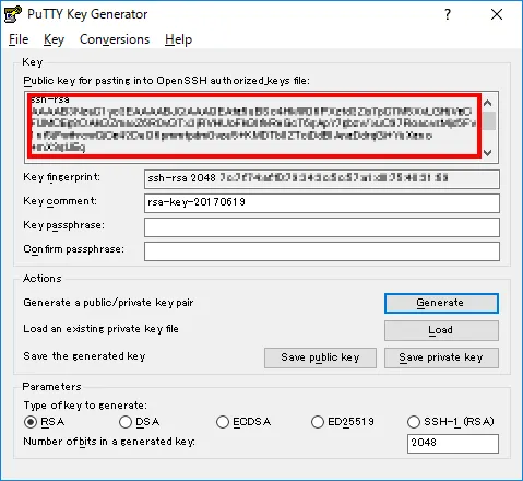 PuTTYGenで鍵ペアを生成する際にその場で表示される公開鍵は,OpenSSH形式なのでそのまま利用できます.しかし,「Save public key」で保存した公開鍵は,RFC4716形式で利用できません.このことに注意して,PuTTYGenを使って鍵ペアを作成する方法を説明します.