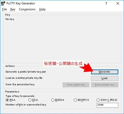 - 「Generate」を選択して,鍵ペアを生成してください.