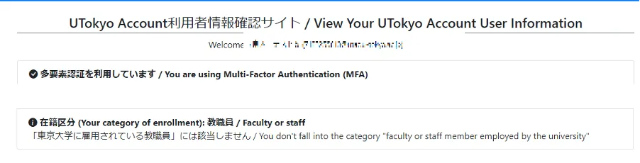 - 「UTokyo Account利用者情報確認サイト」を開いてください.