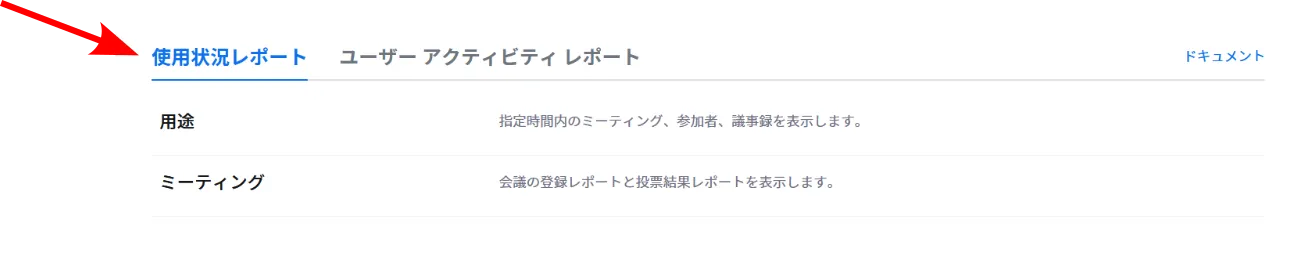 ※通常は,初めから「使用状況レポート」タブが選択されています.