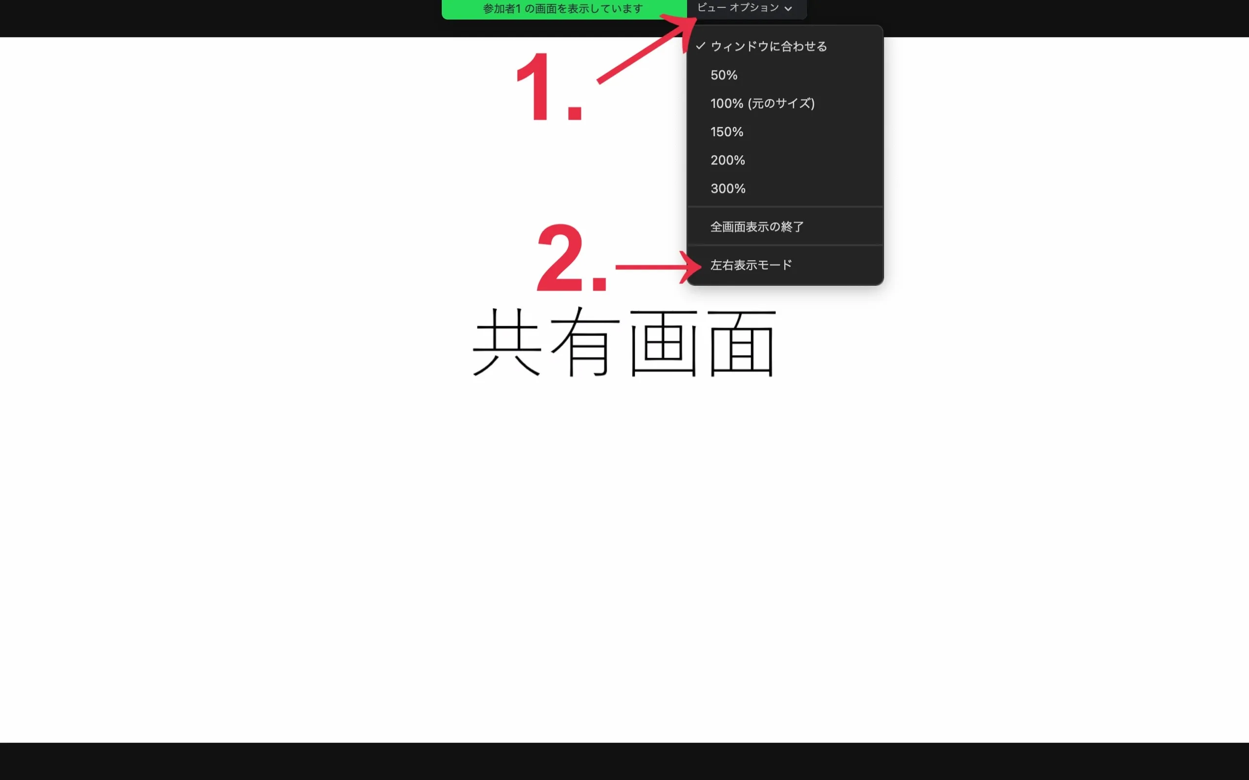 共有画面と参加者のビデオを左右に並べて表示する(左右表示)