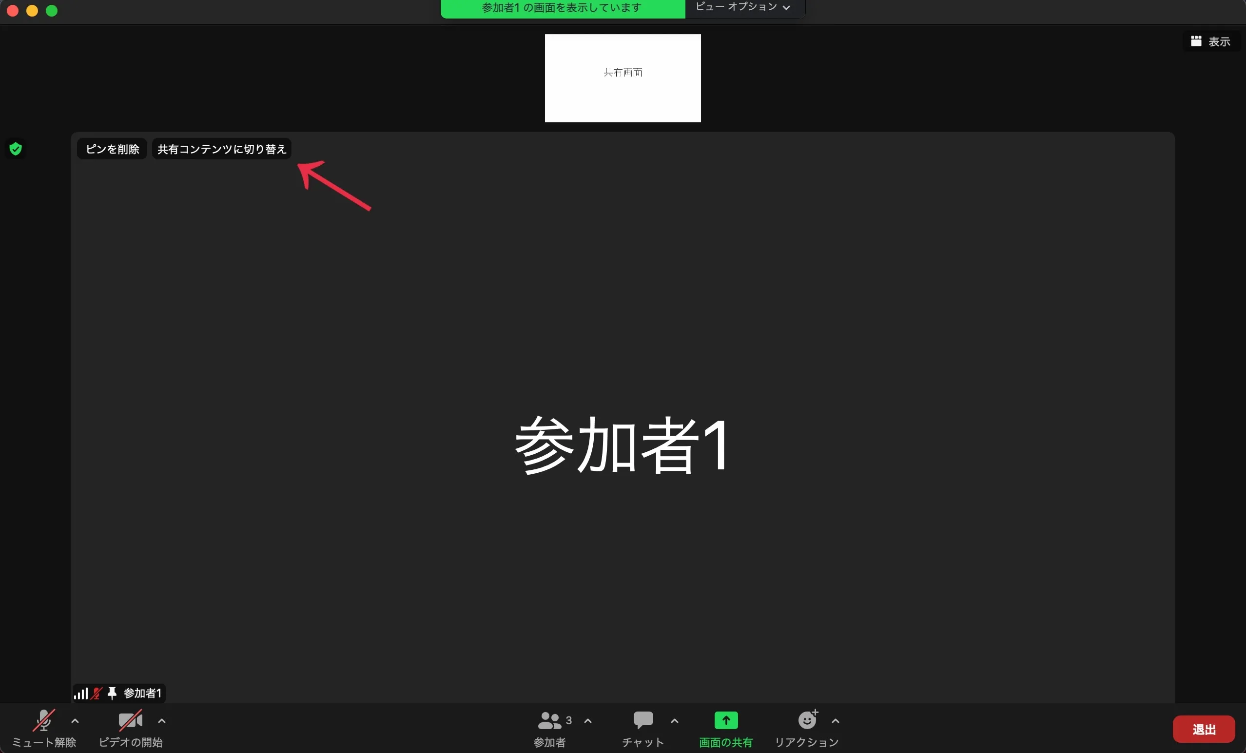 スワップを終了させたい場合には,画面左上に表示される「共有コンテンツに切り替え」を押すと元に戻ります.